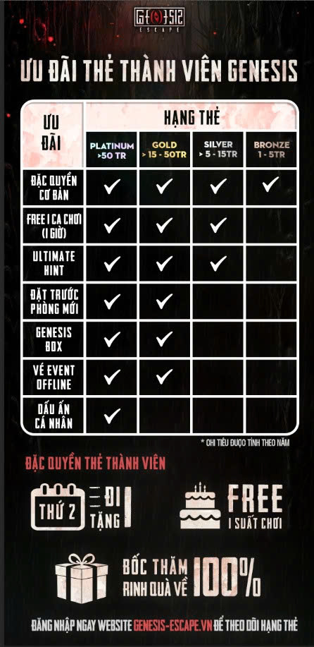 Phòng chơi hay, không gian đầu tư, npc diễn làm bọn em nổi da gà và thực sự nhập tâm vào nhiệm vụ. Các nhiệm vụ nó hack não, thực sự đòi hỏi người nghĩ phải có rất nhiều chất xám luôn í, nó logic, bọn em toàn tuyển toán mà giải mãi kh xong:)). Ngoài lề chút là nhân viên siêu nice, hôm đó bọn em đc extra thêm 1 tiếng, là tổng cộng 2 tiếng chơi, nma bọn e đến muộn mất 45p, các achi nhân viên siêu thông cảm và vẫn cho bọn em chơi đủ 2 tiếng. Chính vì những lí do đó đã khiến nhóm em quay lại và chơi lại ngay ngày hôm sau, dù lúc đầu không nằm trong kế hoạch và tiền quỹ nhóm sẽ tăng, nhưng Gen quá tuyệtt. Và cuối cùng bọn e đã thắng:)), về Hp đc 2 tuần buổi đi escape hôm đó vẫn là chủ đề không hồi kết trong cuộc nói chuyện của bọn em.